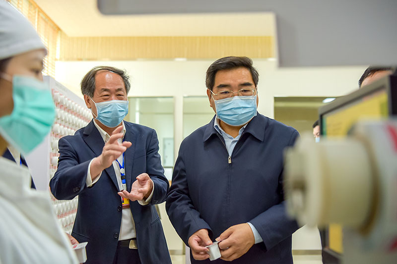 连维良副主任一行先后参观了持正堂智慧药房、中药提取车间,对中药制剂研发、生产、调配等方面的工作进行了详细了解。